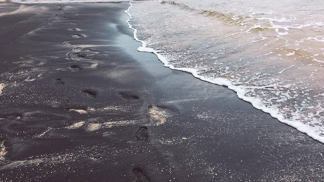 瀑布出来准备去天空之桥的路上,看地图上有个黑沙滩景点,黑沙滩比较小,渔船很多,沙滩是黑色的有股淤泥臭味,黑沙面积较少,看起来很像芝麻糊或者夹层蛋糕。