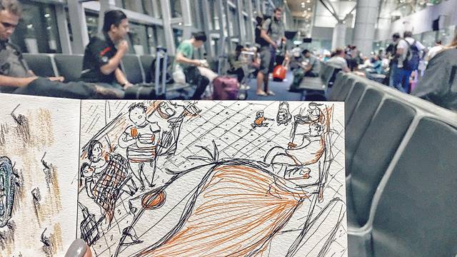 在候机的时候突然想起这一趟我带着小本本来的,于是画了一张候机时候的。