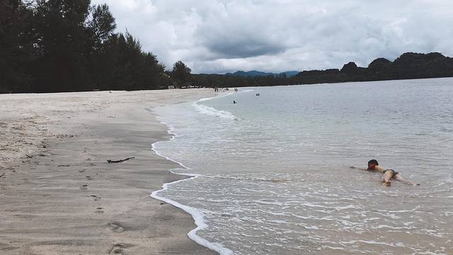 丹绒鲁海滩景点有小商铺,穿过一个小门就是。白白的沙子特别美特别柔软,迫不及待的想跳进去游泳。学着小朋友躺在水里,随着浪拍打,可惜浪来了本能的闭上眼睛呛了口水。