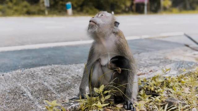 出来时估计到了晚饭点,停车场多了很多猴子,在背包里找钥匙的时候被盯上了,一个猴子妈妈那个脸皮厚得很,一直跟到车前,特别害怕她突然打我。着急的扔了一袋饼干给她。