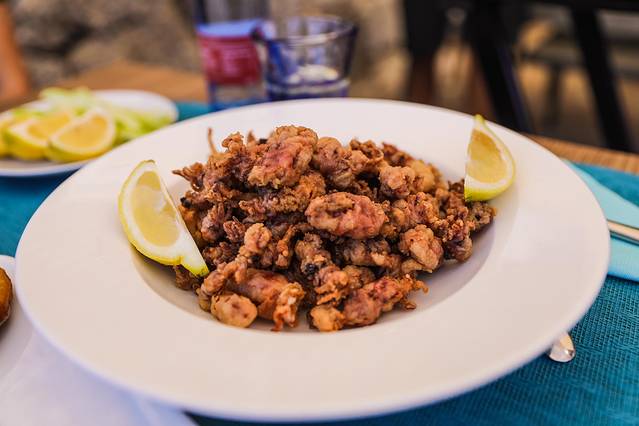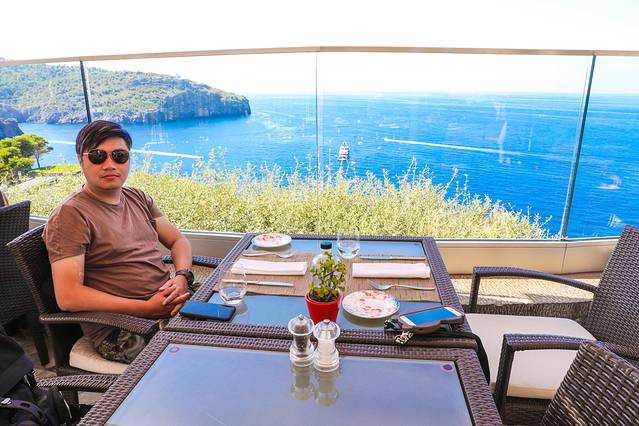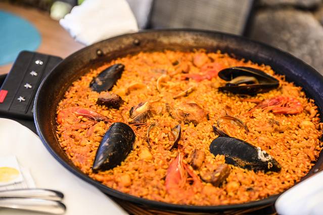 走进餐厅,里头别有一番洞天。户外平台上,简易地摆放着几张桌椅,没有过多的修饰,眼前这一整片一望无际的无敌海景无疑是这家餐厅的最佳宣传片。能在此用餐,我想说真的是人生最幸福的事情之一了,更何况餐厅的烹饪水准丝毫没有令我失望,也是在这里,我吃到了全程我给出最高分的西班牙海鲜饭。