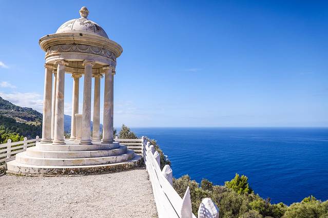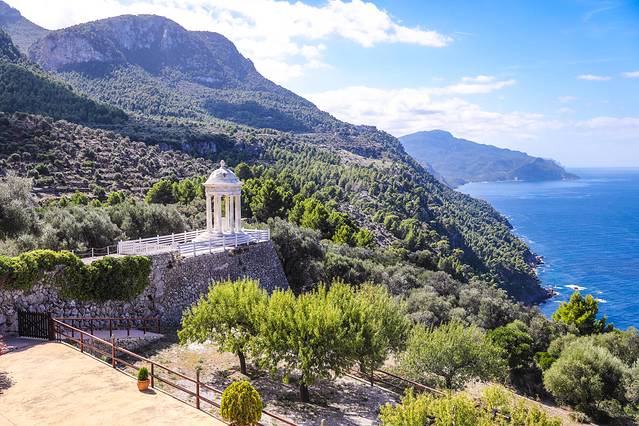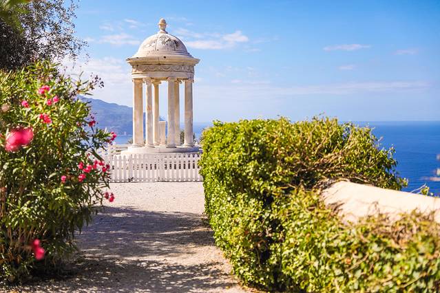 从Deia驶过仅5分钟左右的车程,便来到了Son Marroig,今日我最爱的一处景点。如果说Valldemossa还不够小众,那这里绝对是我力荐的一个私藏景点。第一眼在照片上看到,背山向海的白色古罗马圆亭就深深打动我,这不正是每个女孩梦中的婚礼场地吗?