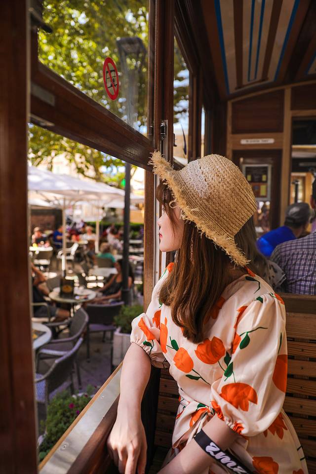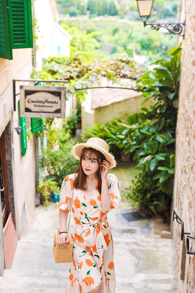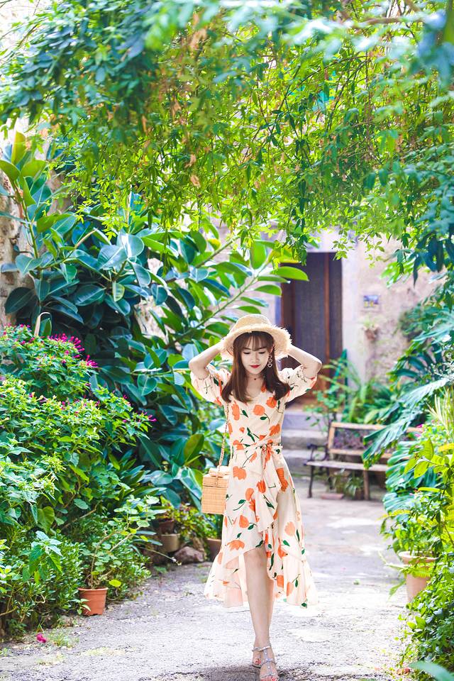 为了应景,当天特意穿了一条淡橘色花朵连衣裙,出片简直和这里不能更搭~