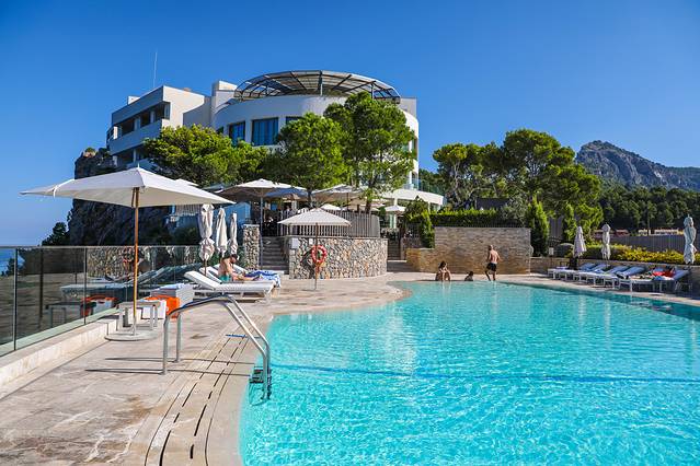 我尤其喜爱它的地理位置。悬崖峭壁上独居一偶,前濒浩瀚无边、连绵不绝的大海,背靠雄伟壮阔的Tramuntana山脉,其非凡的地理位置和自然环境注定让每位住客铭记一生。