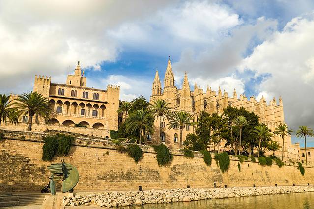 哥特式的帕尔马大教堂是马略卡岛的标志性建筑,它位于帕尔马老城山坡上,介于阿尔穆德纳王宫和主教宫之间,始建于1229年,直到1601年才完成。宏伟惊艳的建筑甚至让人难以想象会在这么一座远离大陆的小岛上。