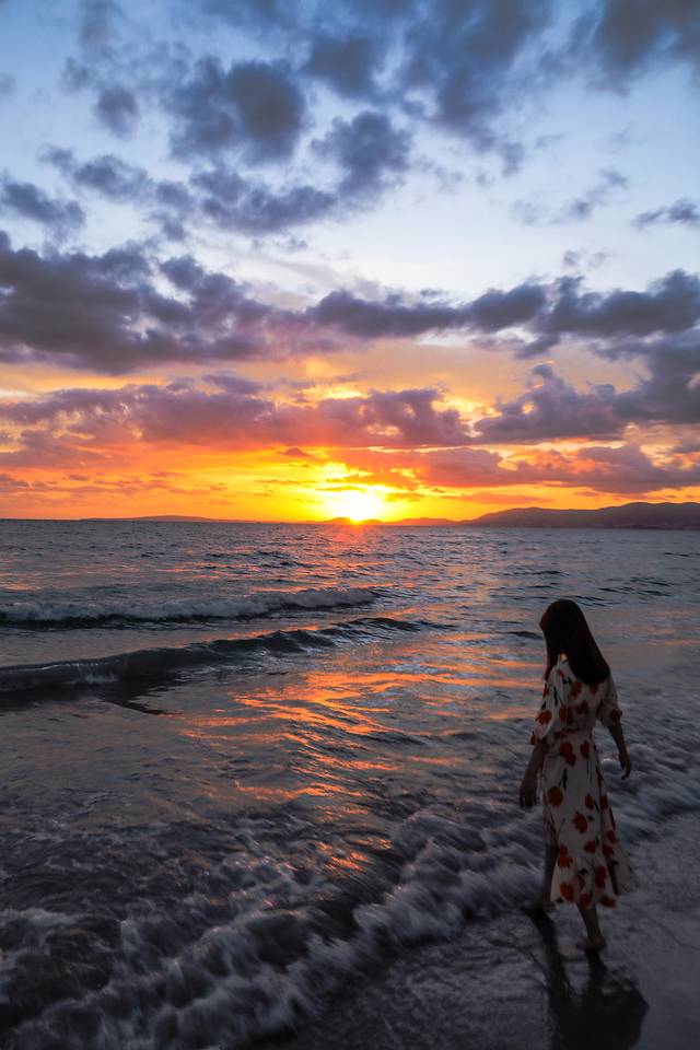 这一天的西部一日游,堪称完美。回到酒店,恰巧日落时分,我们又冲到酒店的沙滩上欣赏日落。其实,在我们入住该酒店当日,就被这里的一场超完美的日落大大惊艳了,可惜当天没有带相机。于是我们决定,只要条件允许,之后的每一天都要过来看日落。