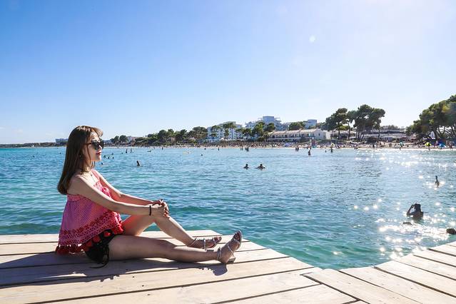 Playa De Muro(穆罗海滩),马略卡岛最优质的海滩之一,水碧、沙细、浪白,被誉为西班牙的蓝旗海滩。查了资料才知道,原来西班牙是世界上拥有蓝旗海滩数量最多的国家,其次是希腊。