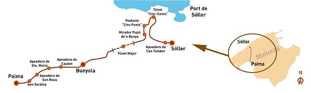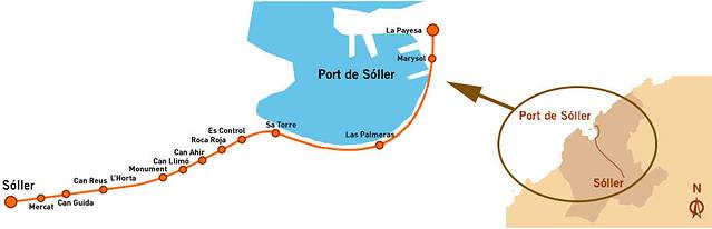 ▼ 索列尔小镇往返于索列尔码头的线路图