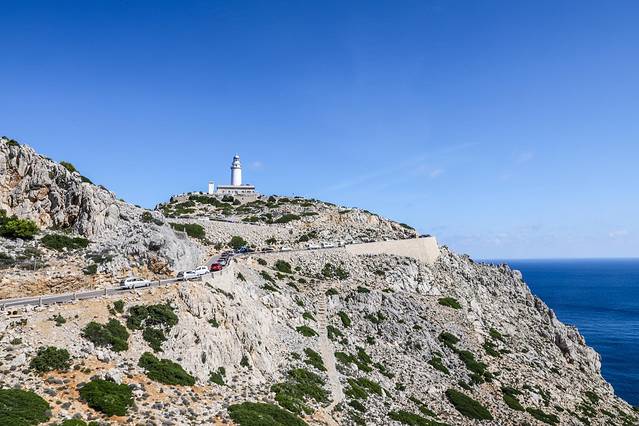 站在灯塔上回看来时的路,没错,如此崎岖的发夹弯上还会遇上大堵车,这里是我在整个马略卡岛上遇到人流最多的地方了,不想遭遇人流的话请赶早抵达。