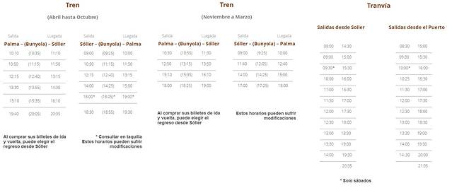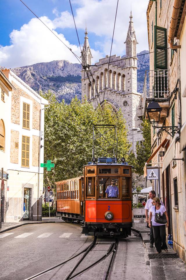 小火车从帕尔马市中心的西班牙广场出发,途中经停Soller小镇,最终驶向终点Soller港口。你可以选择搭乘全程慢悠悠地一路晃过去,也可以仅选择其中的一段感受下小火车的百年历史就好。