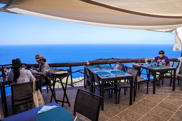 此处必须重磅推出这家餐厅BAR RESTAURANT MIRADORS DE NA FORADADA,就位于私家庄园旁边。感谢向导Cherrie为我们精心挑选的这家海景餐厅,还提前预定了景观位,否则我们一定无缘于此。餐厅外形是个非常漂亮的石头屋,若非看到墙上挂着的餐厅名字,很难会把这儿和餐厅联系在一起。