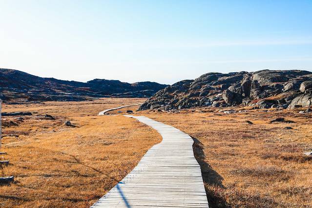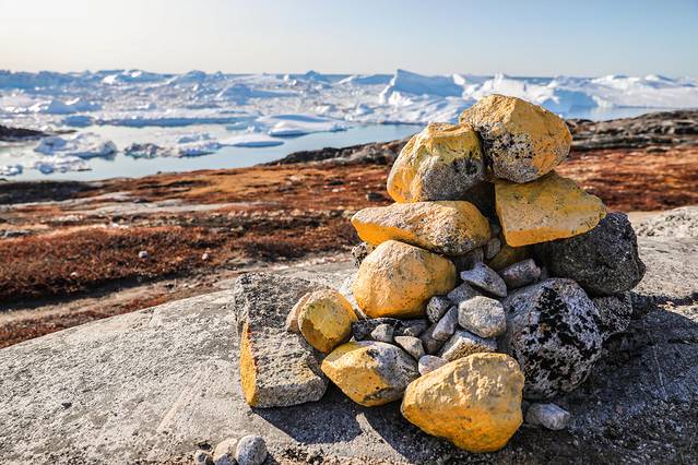 伊卢利萨特冰峡湾共有三条徒步线路,蓝线、黄线和红线,三条线的交汇点是The old heliport,也是三线的徒步起点。整个徒步线路中都会有用红色、蓝色、和黄色标记的原点,循着这些标记前进就能顺利走完全程。