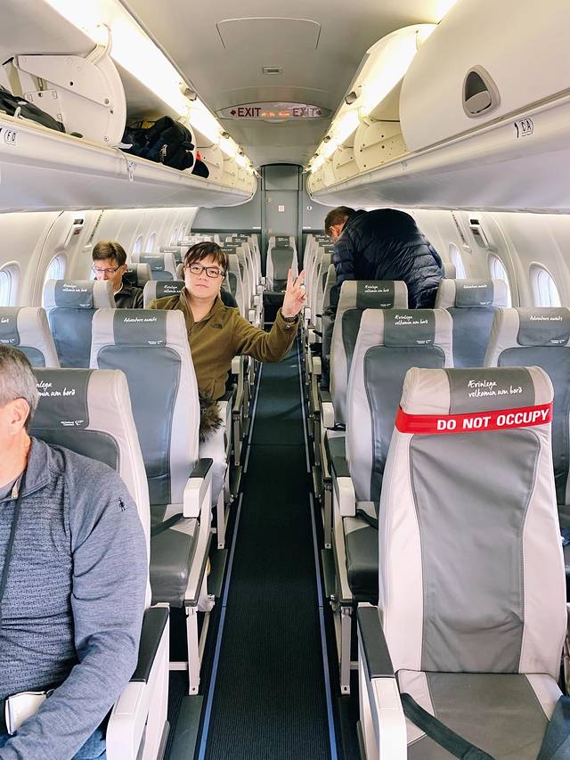 格陵兰岛远离大陆,加之人烟稀少,别说中国,就连美洲、非洲和欧洲大多数地方,也都没有直飞格陵兰的航班。目前飞格陵兰只有Air Greenland和Air Iceland两家航空公司,航线分别从丹麦和冰岛出发。我们此行主要目的地是冰岛,因此选择从冰岛飞。从冰岛雷克雅未克(Reykjavik)飞往伊卢利萨特,短短三个小时左右航程,往返10000人民币上下的机票价格,足以从中国飞到几乎世界上任何地方。更甚者,如此昂贵的票价几乎是一票难求!格陵兰岛大部分机场都非常小,只能允许小型飞机降落,一架小型Air Iceland螺旋桨飞机只能载36名乘客。另外,从冰岛雷克雅未克到伊卢利萨特的航线仅夏季开放,每周仅周二和周六两个航班,综上所述其紧俏程度不容小觑。因此,当我提前半年搜算到官网还有余票的时候,我几乎是毫不犹豫支付全款抢下了这两张珍贵的机票,也许晚一秒,梦想就会落空。