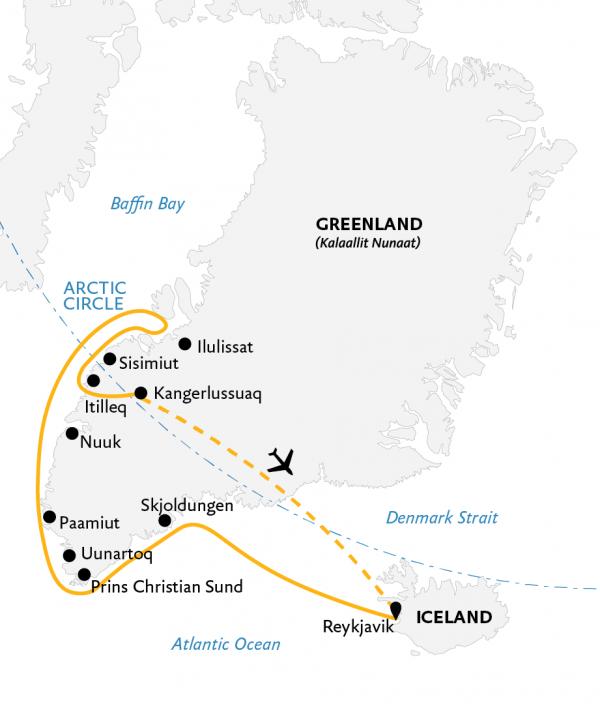 附一张冰岛🇮🇸和格陵兰岛的位置图,我们此行是从冰岛Reykjavik直飞格陵兰Ilulissat飞机飞机飞机