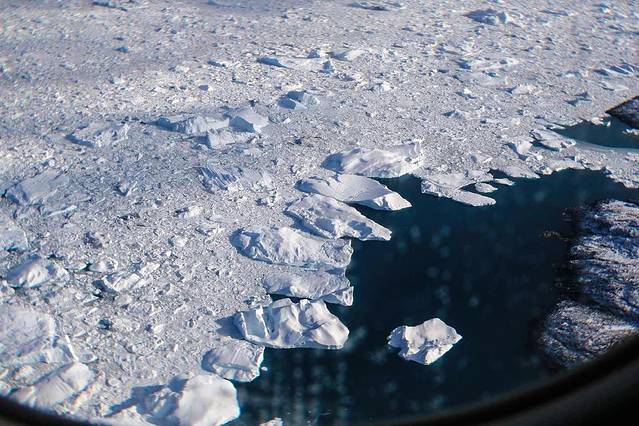 向窗外望去,海面上的冰块似乎漂浮得离我们更近了些。