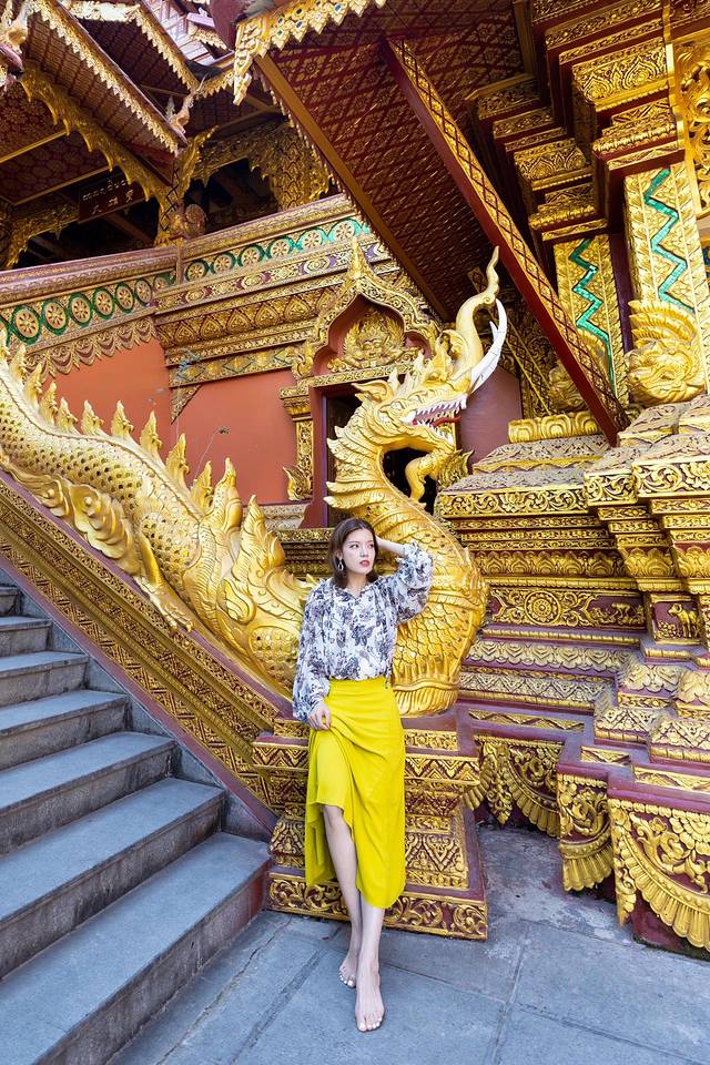总佛寺紧邻曼听公园,有一种异域的感觉。有没有去了东南亚的感觉?美琪说“特别像泰国的大皇宫”。也听旁边游客开玩笑说这里是“小泰国”。这里的建筑很有特色,有浓浓的少数民族特色和东南亚风情,坐在大殿前的佛像威严而肃穆,寺庙免费,可以配合曼听公园一起游玩,了解西双版纳文化。数百年前,小乘佛教传入云南西双版纳,成为傣族全民族的宗教信仰。