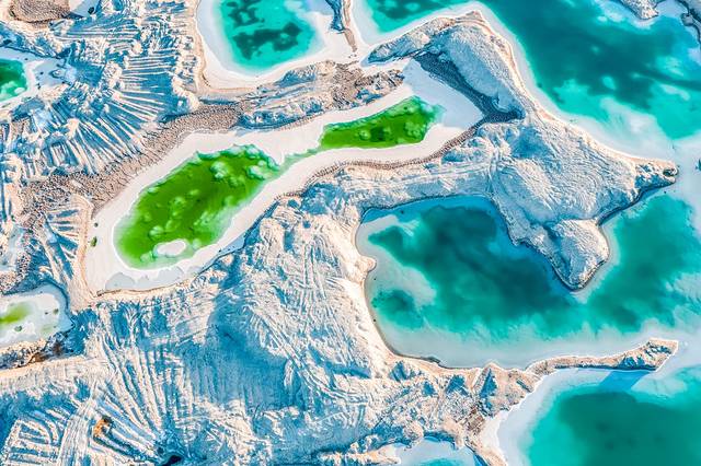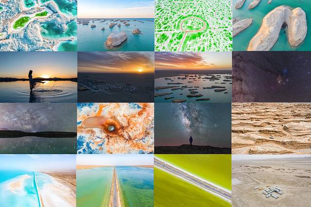 大柴旦翡翠湖,即茶卡盐湖之后的又一个“天空之镜”,我觉得应该称之为“大自然的调色盘”,翡翠湖是一块块不同的盐湖组成,星罗棋布的分布在四周,盐湖的色彩也很丰富,站在湖边就能感受到它的美丽,航拍下的大柴旦翡翠湖才壮观,此刻才能明白为什么称之为“翡翠湖”,大自然的调色盘当之无愧。