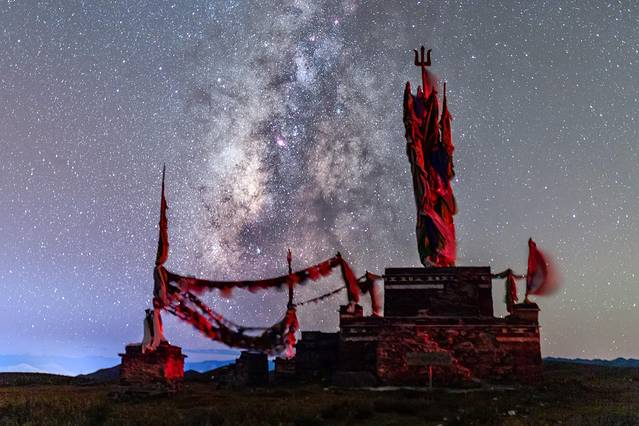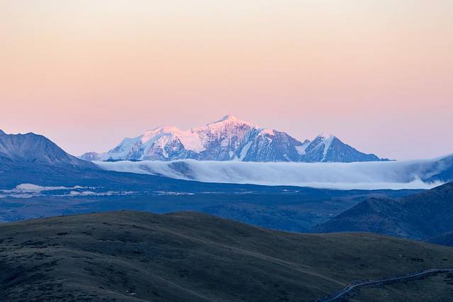 今年很热门的鱼子西露营地,到达新都桥可以在继续前往曲木寺,据说这里可以看到贡嘎雪山,我们就直奔而来,公路+水泥路+搓衣板路。到达山顶已经有点晚了,贡嘎雪山的主峰被云笼罩着。我们就干脆在这里等待银河。