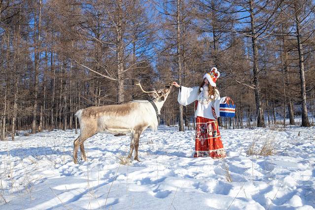冬日里去寻找驯鹿也是不错的一种体验,雪地和森林里和驯鹿来一次不期而遇。特别是圣诞节要到了,丸子和嘉嘉都准备了服装来和驯鹿合影。