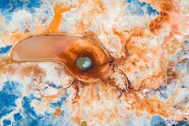最让我惊艳的是茫崖的艾肯泉了,也叫“恶魔之眼”。“艾肯”在 蒙古 语中是“可怕”的意思。据说是因为泉 水里 的含硫量极高,连外面的芨芨草遇上都会枯萎,更别说飞禽走兽了,所以野兽见了此泉也会害怕,既不敢喝,也不敢到里面去洗澡,所以就得名“可怕的泉水”。航拍艾肯泉还真的有点像眼睛一样,周边一条条温泉流过地细小沟壑,像极了血管,加上红色和金色还有蓝色,恶魔之眼“名副其实”了。(这张照片还入选了2020年马蜂窝的年度日历)。还有不得不吐槽的是现在的艾肯泉已经有点奇葩了,看了之后很多朋友去拍摄的,恶魔之眼咋多了“一坨眼屎”,真的是画蛇添足建了一个观景台,被很多人强烈吐槽,心中的恶魔之眼已经不完美了。
