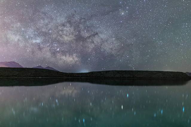 夜晚的大柴旦翡翠湖又是一番景象,这个时间估计大多数人都回酒店趟被窝了,我们可是兢兢业业的追星小分队,夜晚也是我们的主场,浩瀚的星河就在我们眼前(当然银河不是说你来到这里就可以见到,也需要知道一些天文小知识,知道它什么时候出现,避开月圆的时间)。此时此刻的翡翠湖就像一面天空之境,银河倒映在上面。高原很容易拍摄到气辉,绿色的气辉很漂亮,以前有人遇到气辉大爆发,拍摄出来很多人误以为是极光,气辉在南方就很难遇到了。