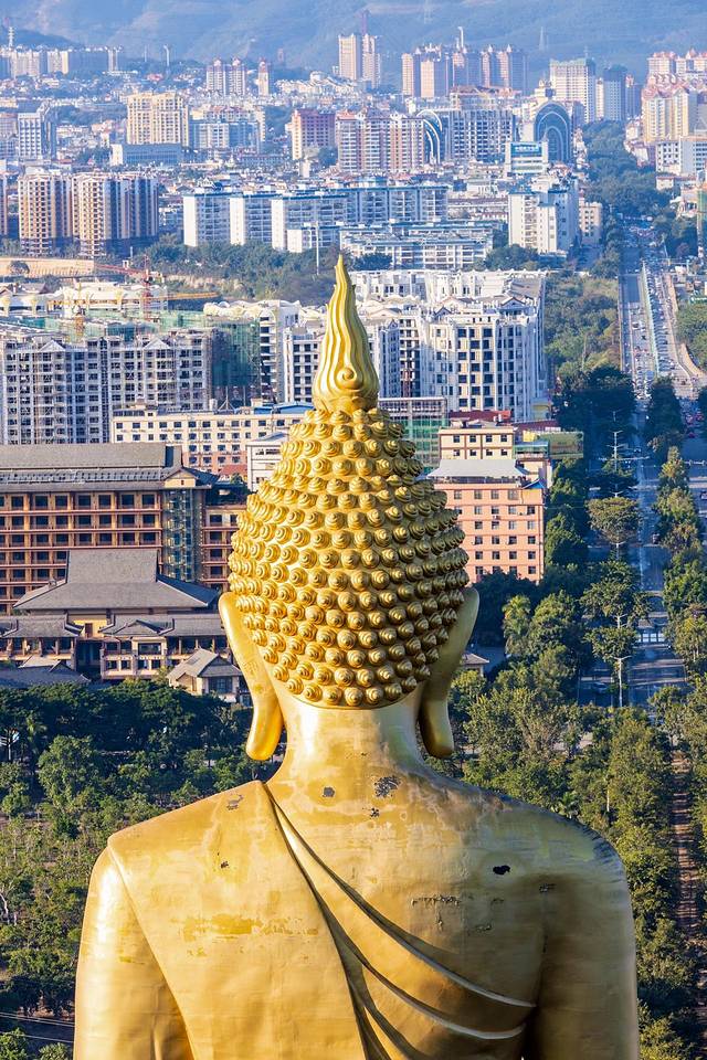 勐泐大佛寺,坐落在南莲山上,这里可以看到景洪市的全景。
