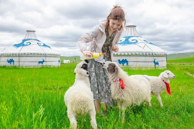 一群小羊羔,可以去体验一下给它们喂奶,它们看到你就会屁颠颠的跑过来。