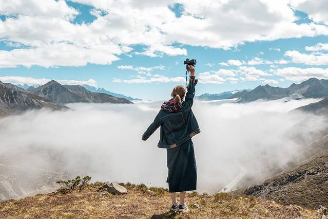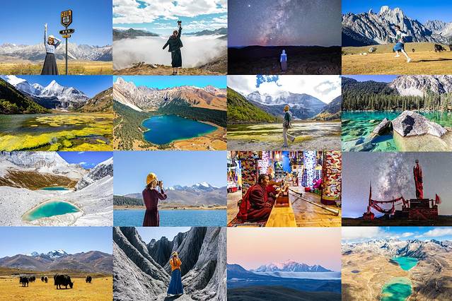 从成都出发,一天的时间就可以到达康定和新都桥,成都的天气最近都不是很好。到达康定要翻越折多山,就正式进入了高海拔地区。折多山垭口很容易遇见云海,可以去看看。过了折多山以后我们就发现蓝天白云了。