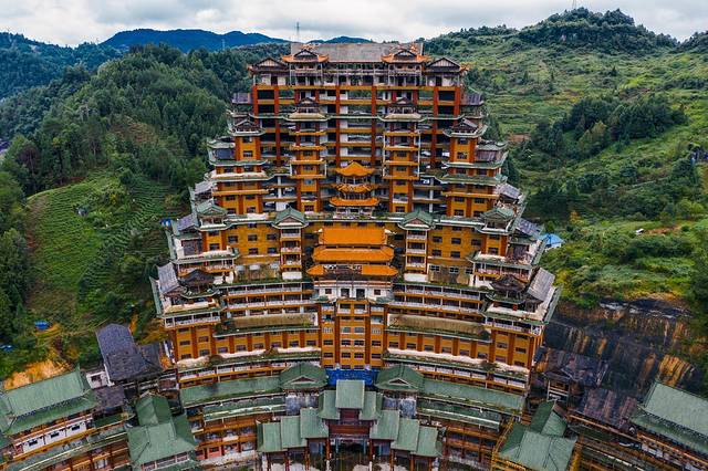 这个天下第一水司楼有什么独特的呢?多多还玩笑说“我们千里迢迢跑来看一个烂尾楼”。没错,这个水司楼就是一栋烂尾楼。水司楼按照水族依山畔水而居的传统习俗和建筑特征修建,是水族人民的文化符号和智慧的象征,已申报三项吉尼斯世界纪录:一是世界最高琉璃陶建筑;二是世界最高水族、布依族、苗族民族元素建筑;三是世界最大牌楼。如今这座耗资2亿的建筑已经烂尾还是很可惜,整个景区游客寥寥无几。