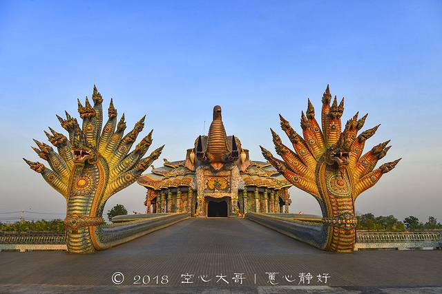 在泰国自驾的第十天,我们计划花三个多小时,驾行230公里,去观赏一位高僧筹资兴建的奇妙建筑,我戏称为“象庙”。这是位于呵叻府的一个偏远景点,很少有国人去到那里,而周边不管是booking还是Airbnb,都没有合适的酒店或者民宿可以供预订,因此我们决定直接开车前往,寻找有缘的住处。