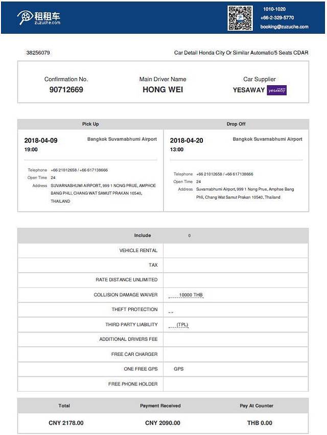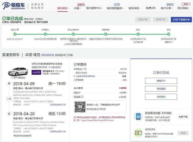 设计好行程,曼谷素万那普机场往返,全程自驾,那除了出机票外就是需要搞定租车的事宜了,这是整个行程实现的基本前提。