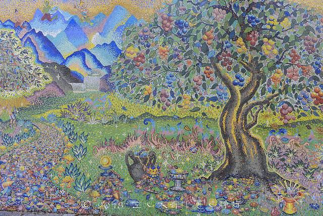 一旁有幅陶瓷马赛克碎片拼贴的壁画,可以看出这里工艺的精湛和细腻。
