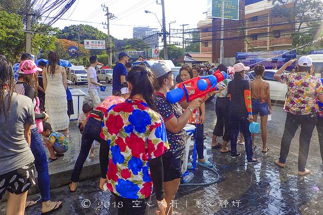 芭提雅是整个泰国泼水节战线拉得最长的,从4月11日开始,到20日方告结束,我们去到芭提雅正是4月19号,还在泼水节的兴奋高潮期。