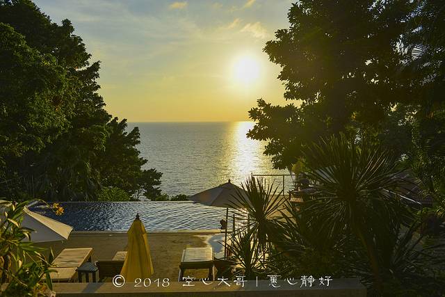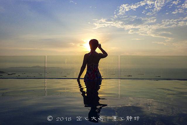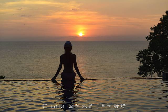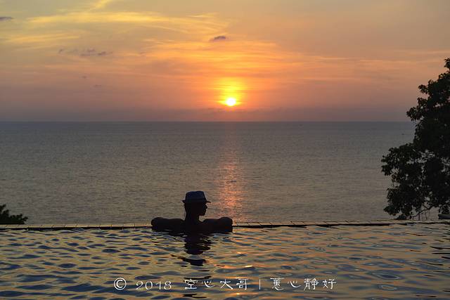 夕阳西下时分,趴在无边泳池里看落日西沉,彩霞漫天,是人生难忘的记忆。