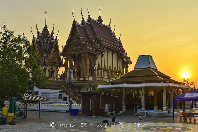 清早到空无一人的湖畔等待日出,第一缕晨曦映照在佛祖和龙婆坤大师的金身上,熠熠生辉。
