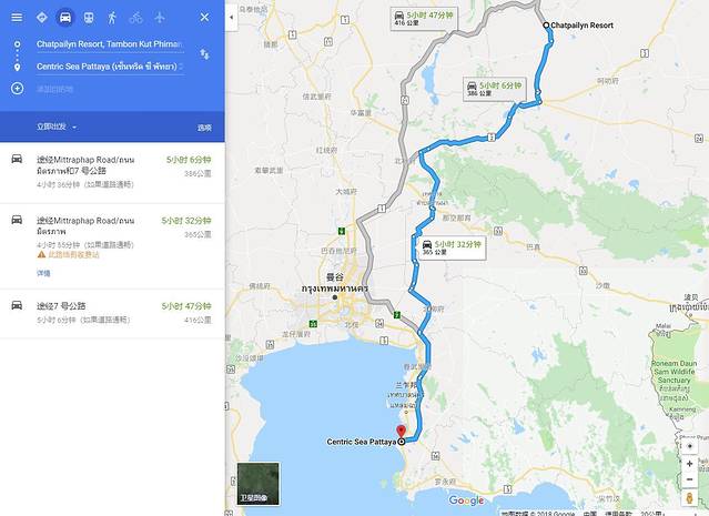 从呵叻到芭提雅,车程380公里,行程5个半小时。