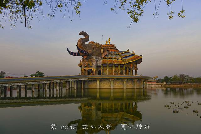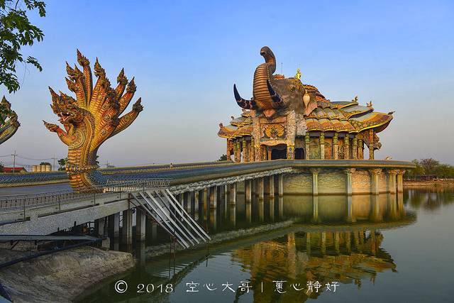 高僧大德不但复兴了Watbaanrai寺庙,更是以一己之力,化缘募集到了60多亿泰铢的善款,由此才有了寺庙后水面上巨大的大象形状佛教博物馆。