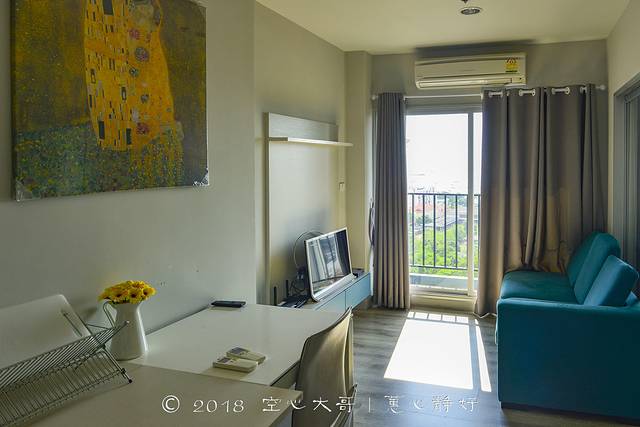 在Airbnb上搜索民宿的时候,我的目标就是:在芭提雅海滩最中心的高楼无边泳池独揽胜景——结果完美实现了!这是公寓的客厅。