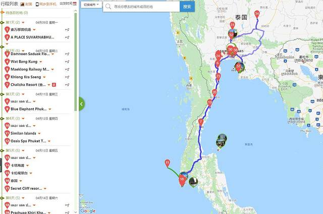 全程自驾的线路和休整地如下图,这是一条能够10天内参加泰国除清迈外三城泼水节的最佳线路和时间安排。