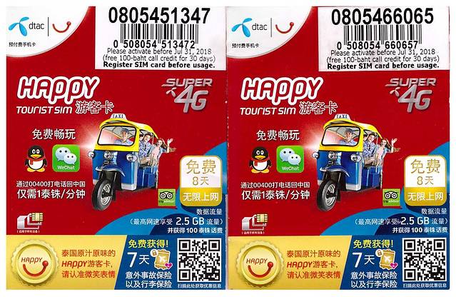 如今最新版本泰国dtac电信公司HAPPY卡,已经是免费8天无限上网(其中2.5G高速流量,用尽后免费2G速率上网),还附赠100泰铢电话费。如果这100泰铢你不用来打电话,在8天后继续用来上网,那么每天封顶的网费是45B,也就可以继续无限上网2天,总共可以用10天,非常超值!