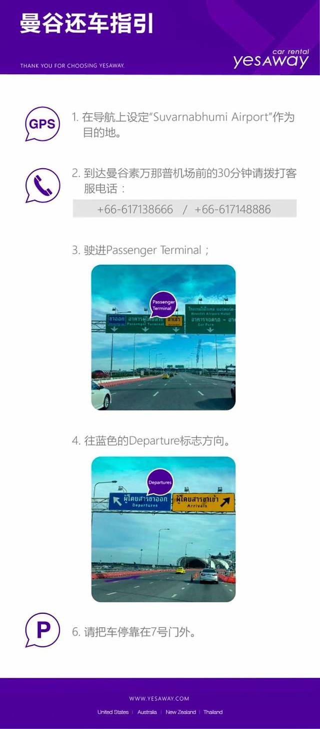 当天就收到Yesaway曼谷客服的微信问候,并且发来了素万那普机场还车的指引图片。