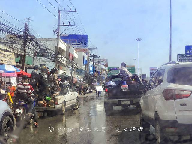 车子进入芭提雅地界,就开始拥堵了,原来下午他们的泼水节狂欢就上演了。
