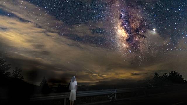 2.人物和星空合照,记得用手电筒给人物打光两三秒就可以了