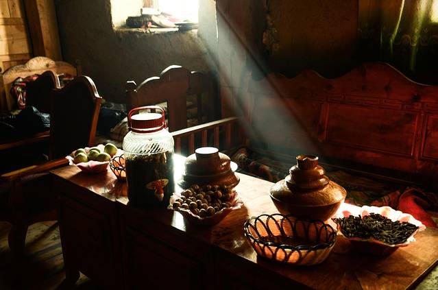 司机师傅路上还把我们带到他家里,喝了酥油茶糌粑还有一个酸的不知道叫什么鬼的东西