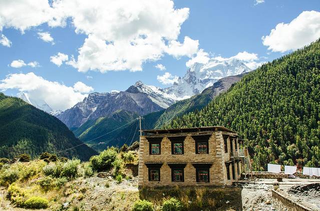 我们住的亚丁村里的3号营地,后面就是仙乃日雪山。日出日落都可以看到
