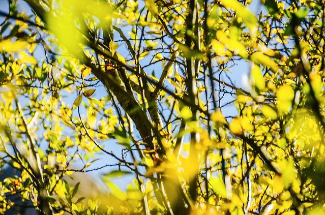 只有可见的几个行人,耳边是淙淙的流水声,一抬头便看到这满树黄叶,天公作美的蓝天白云,美到爆炸的光线,有种被秋天宠溺的错觉。