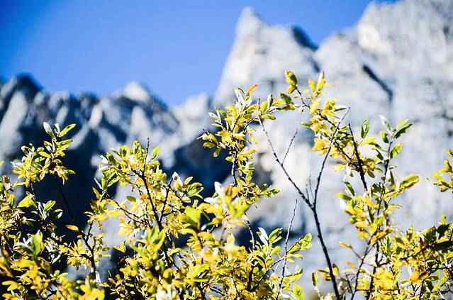 看着那么美的光线,忍不住想要给这些植物拍写真,远处还有隐隐可见的雪山,美如画