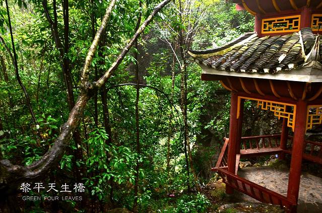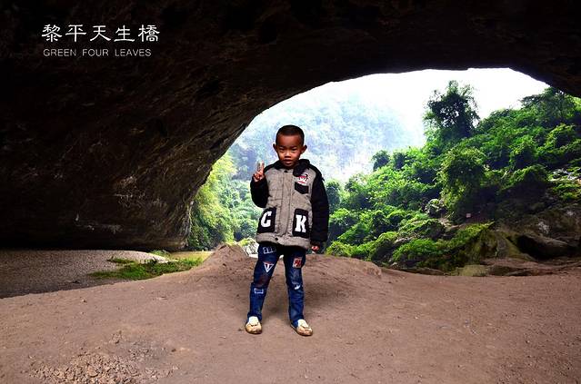 这就是天生桥啦!天然石拱桥,全长256米,主拱横跨福禄江上,跨度138.4米,桥宽118米,拱高至水面36.64米,拱顶岩层厚40米;附拱拱跨78米,高28米,宽119米,是世界上最大的天生桥,仅主拱跨度就远大于2001年世界基尼斯记录美国犹他州天生桥雷思博桥(跨度88米,高30米),黎平天生桥2001年1月15日正式获得基尼斯世界之最证书。还是不得不感叹大自然的神奇啊