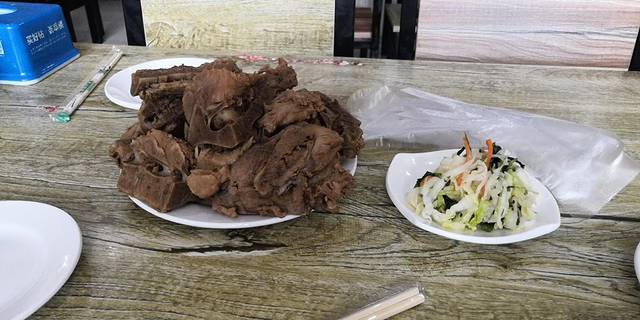 大概下午2点左右,到扎鲁特旗镇上吃个饭,一家面馆,量大味美价格廉。这是小盘酱骨,35元。