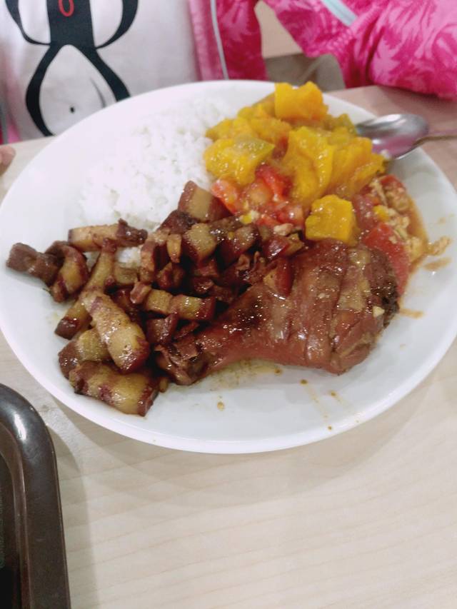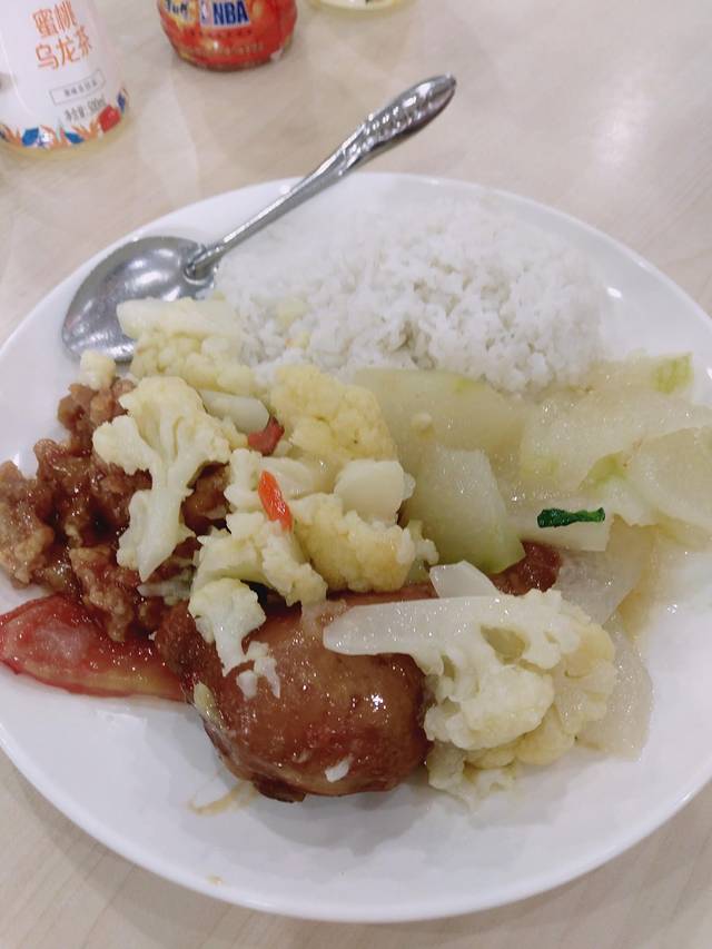 途径建业餐厅,本来老妈想买瓶水,也走累了就进去歇歇恰逢中午,也有点饿了。他们一楼的餐食只售卖学生,游客去二楼买餐券,只能吃套餐,两荤两素30元,饮料5元。不过菜品还是很丰富的,可以自选,味道也还行。